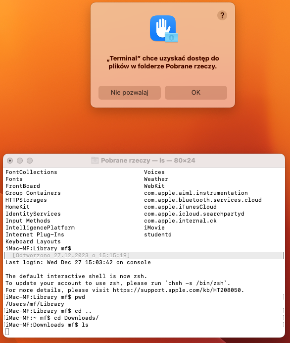 Rozpakowuję z terminala. Terminal otwieram z Launchpada w Docku wpisując term. W terminalu wydaję komendę: