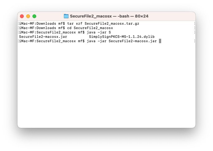1 | cd ~/Downloads/SecureFile2_macosx && java -jar SecureFile2-macosx.jar |